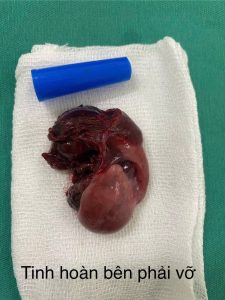 Trực tiếp thăm khám, đánh giá và phẫu thuật là BS CKII Nguyễn Minh Phú – Chủ nhiệm khoa, người đã nhanh chóng xác định tổn thương, chỉ định cắt bỏ tinh hoàn hoại tử và lấy máu tụ kịp thời, cứu bệnh nhân thoát khỏi biến chứng nguy hiểm. Sau phẫu thuật, bệnh nhân ổn định.